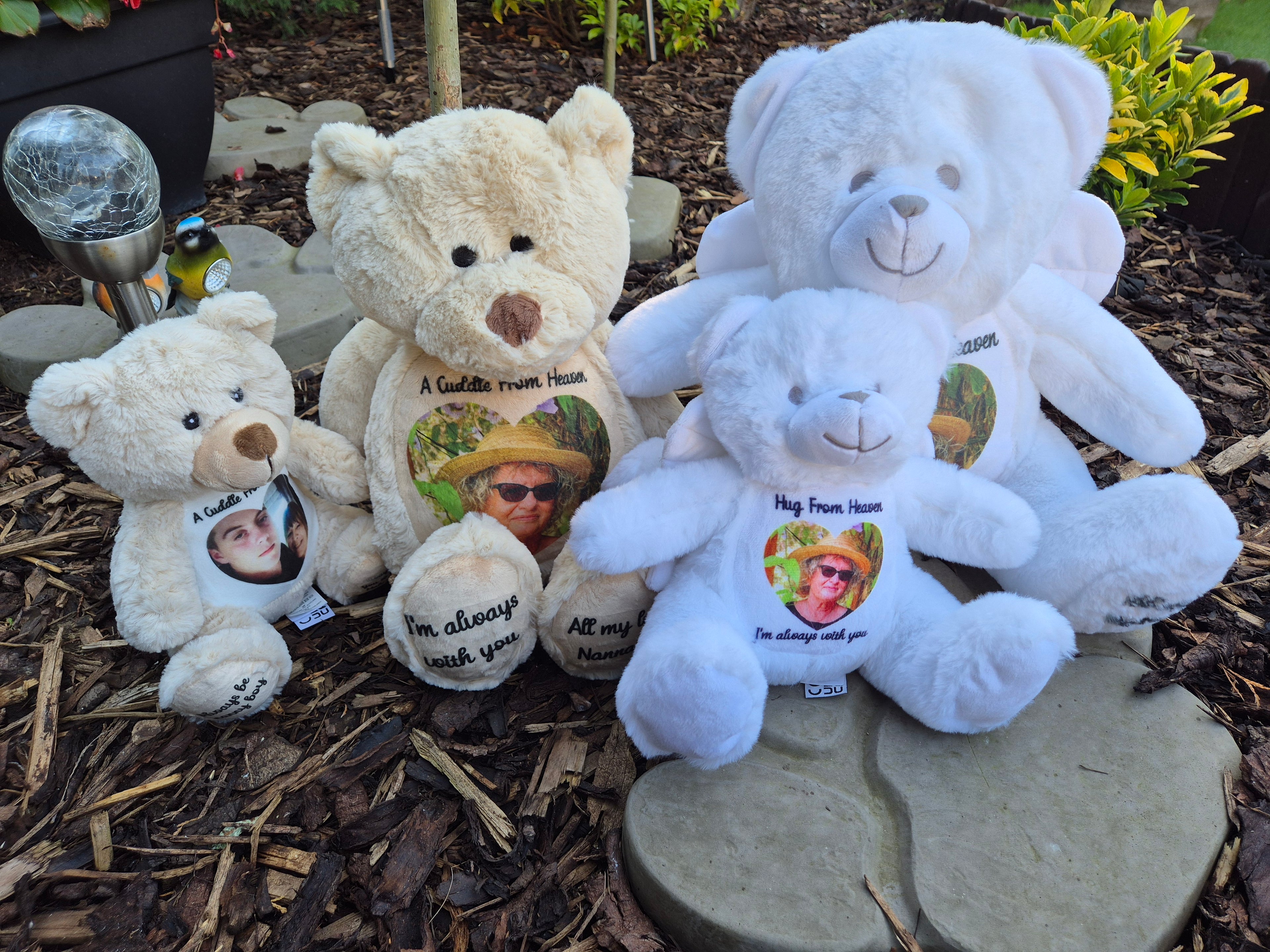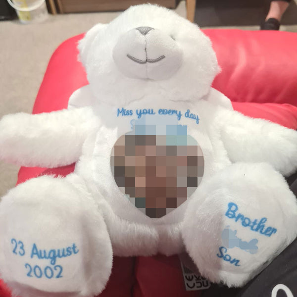 A soft cuddly teddy you can personalise with your own words and, if you wish, a photo.There are no pre-written designs - you create something that feels right for you.